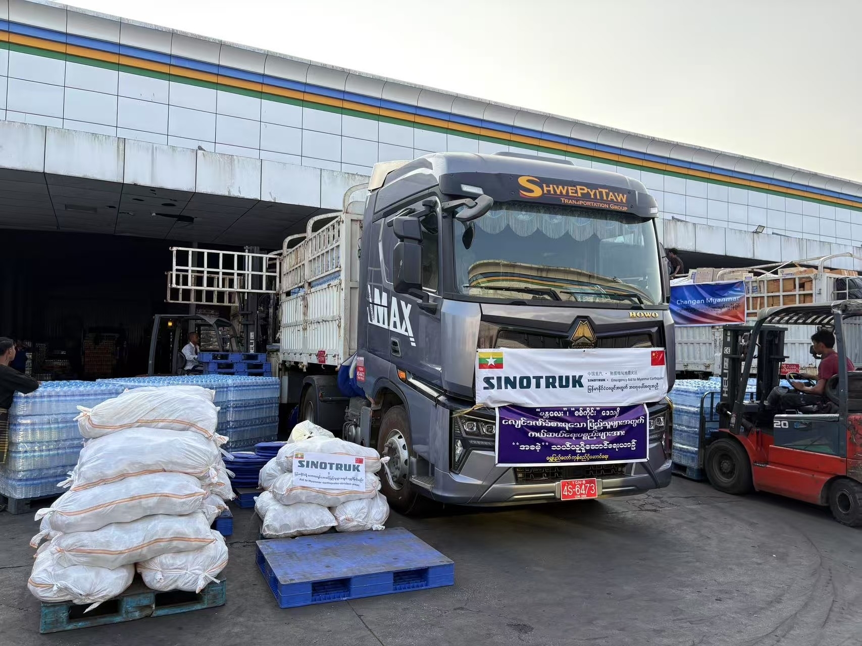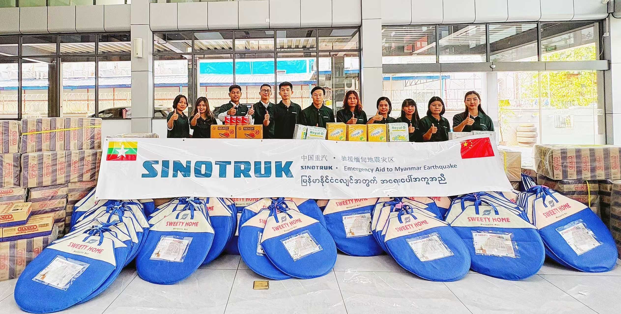 中國重汽馳援緬甸地震災區——兩車物資分送曼德勒和內比都